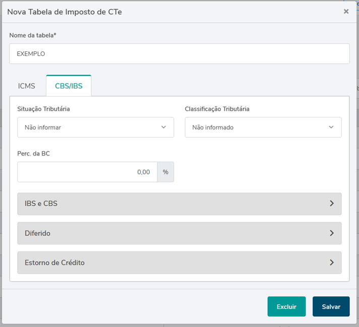 PROC003 - Tabela de Imposto de CTe - Reforma Tributária: