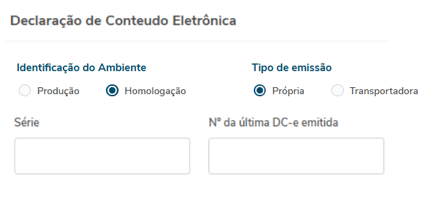 3. Nº da última DC-e emitida: valor padrão: vazio.