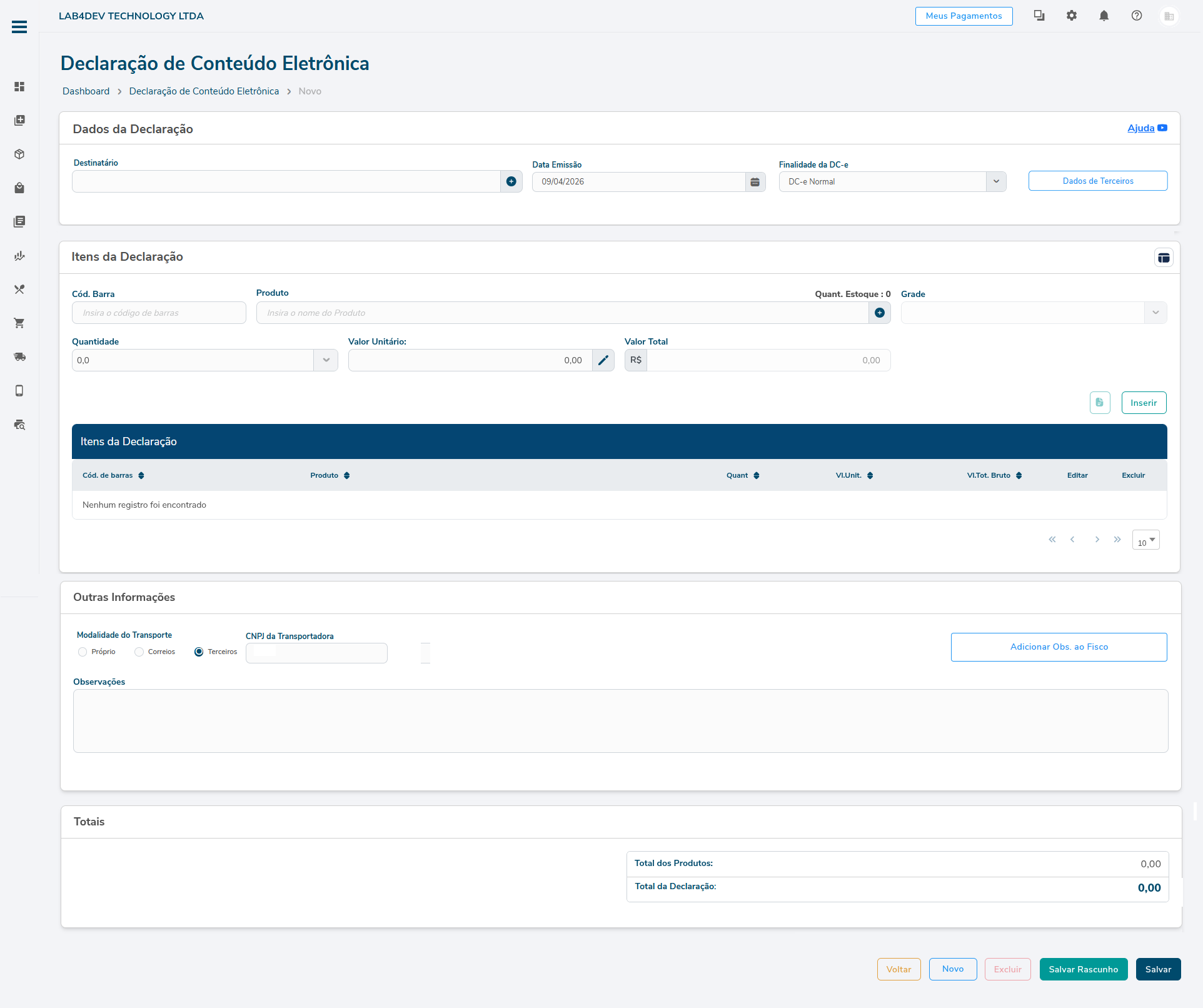 22. Novo: o clique no botão deve recarregar a página iniciando uma nova DC-e, descartando alterações feitas.