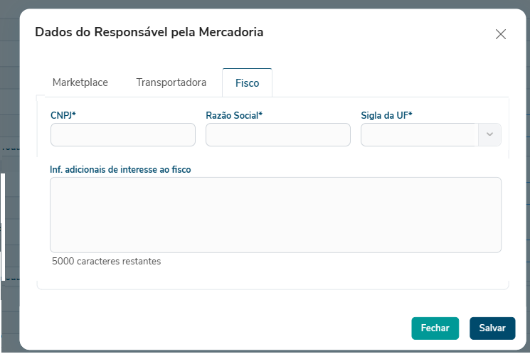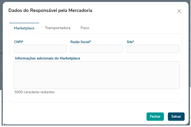 Imagem IV - Dados do Responsável pela Mercadoria I - Marketplace