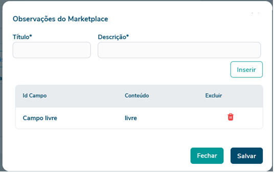 Imagem VII - Informações livres direcionadas ao Marketplace.