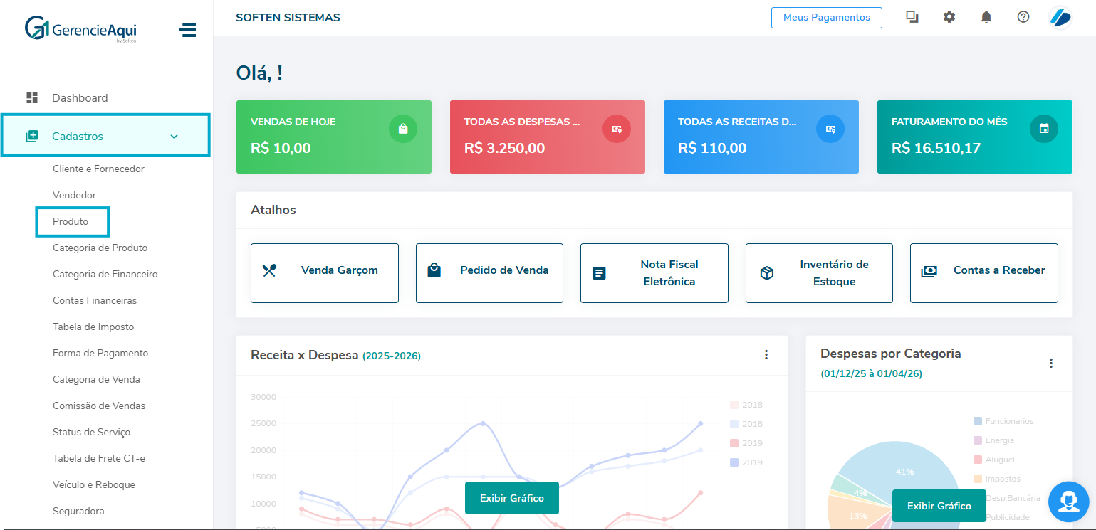 Clique em CADASTRO > PRODUTO.