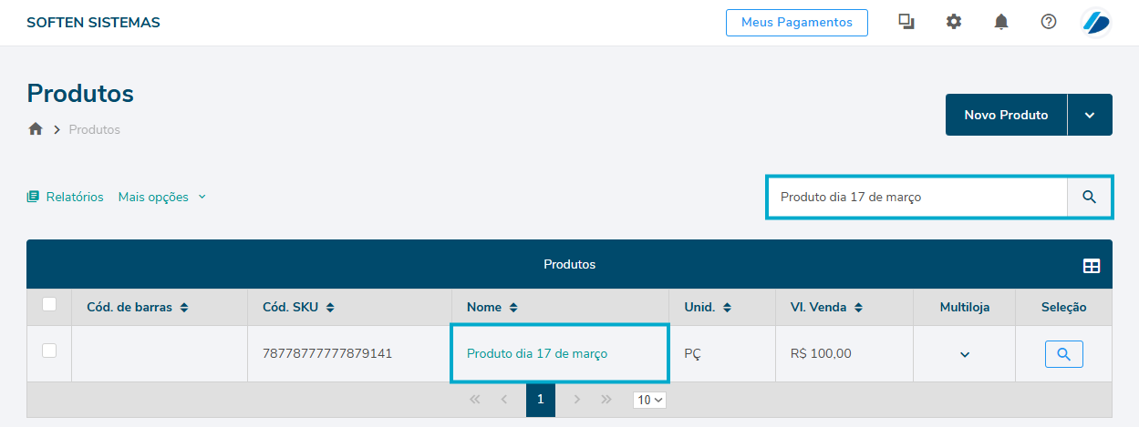 Preencha a descrição do produto ou o código de barras no campo de busca. E clique no nome do produto para abrir sua tela de cadastro.