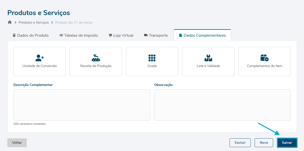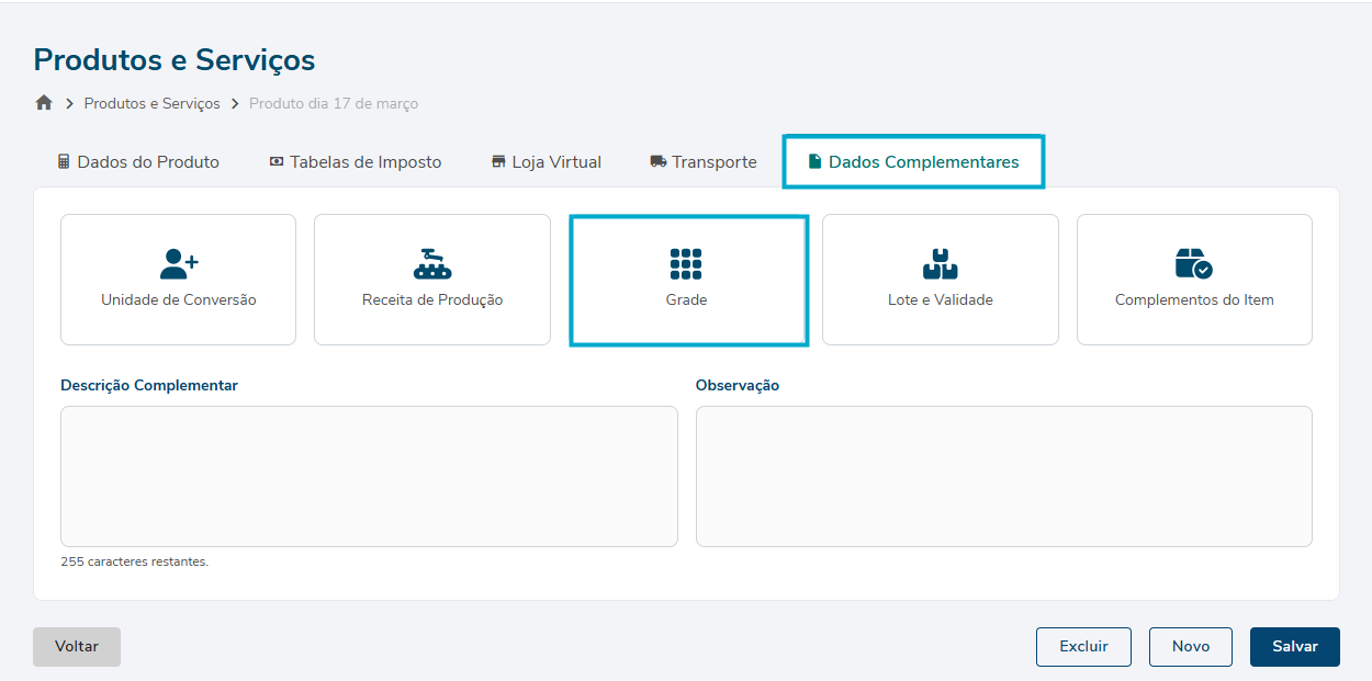 Aplicar GRADE no cadastro do produto
