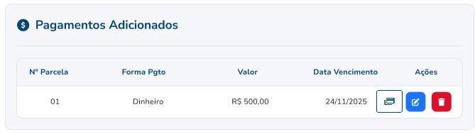 2. "Forma de Pagamento", "Valor", "Data de Vencimento", segui as mesmas regras já definidas em "cartão de crédito"