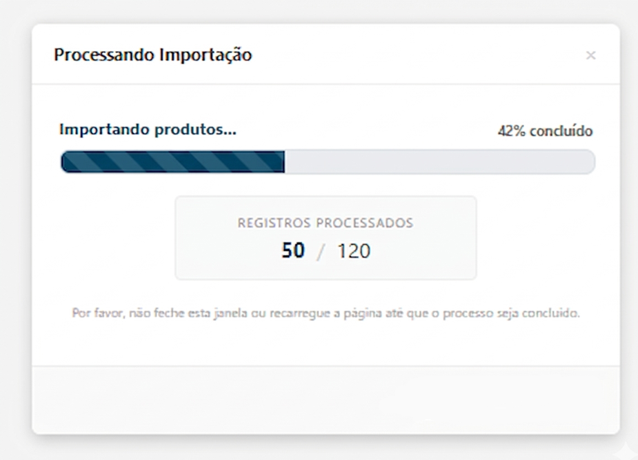 Imagem I - Exemplo de nova Dialog de guia para importação de Produtos.
