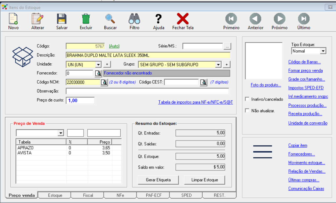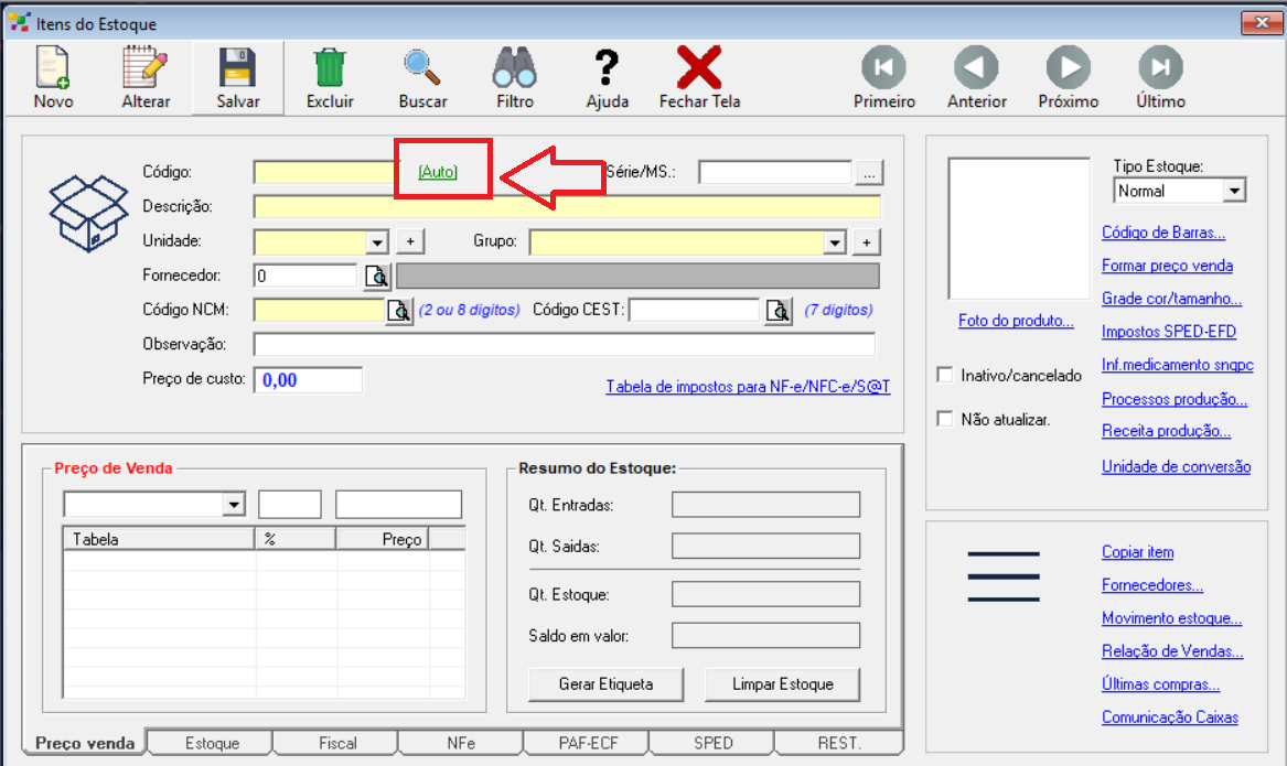 Ao abrir o cadastro, poderá estar também consultando aqueles itens já cadastrados por pesquisar um * (asterisco).