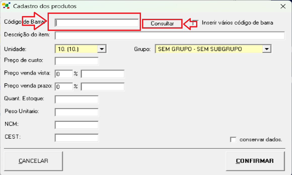 Preencha o código de barras do seu produto e depois clique no botão Consultar