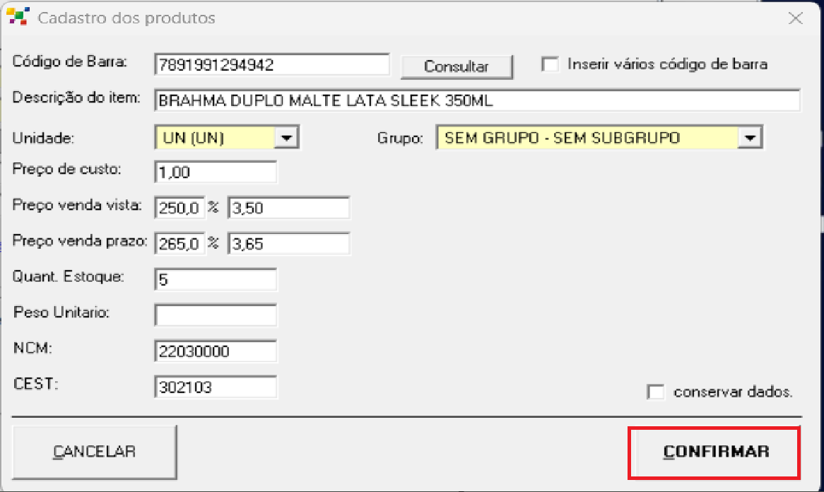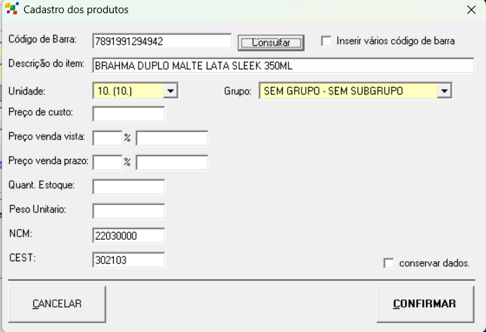 Sistema buscara os dados, de NCM, DESCRIÇÃO e CEST automaticamente