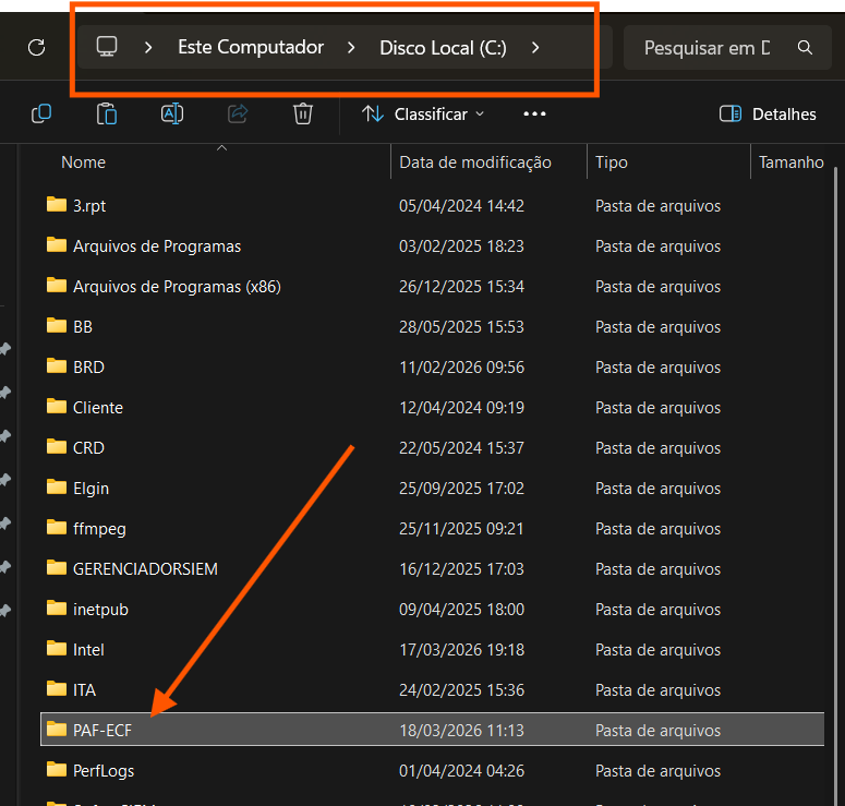 2.2)Colocar a pasta do PAF no Disco Local C: do cliente.