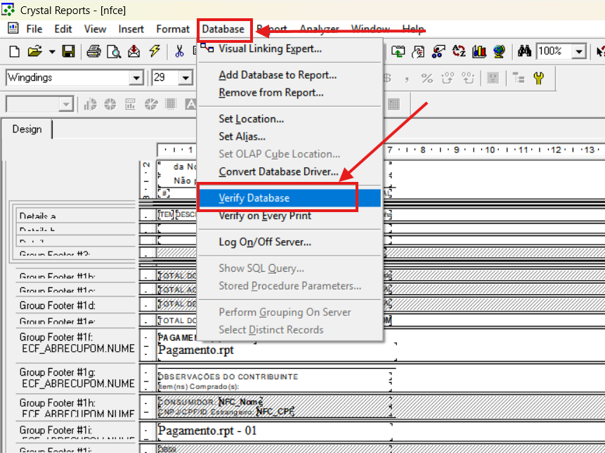 5) Dar verify no relatório nfce.rpt e nfceCanc.rpt que fica dentro da pasta do PAF-ECF